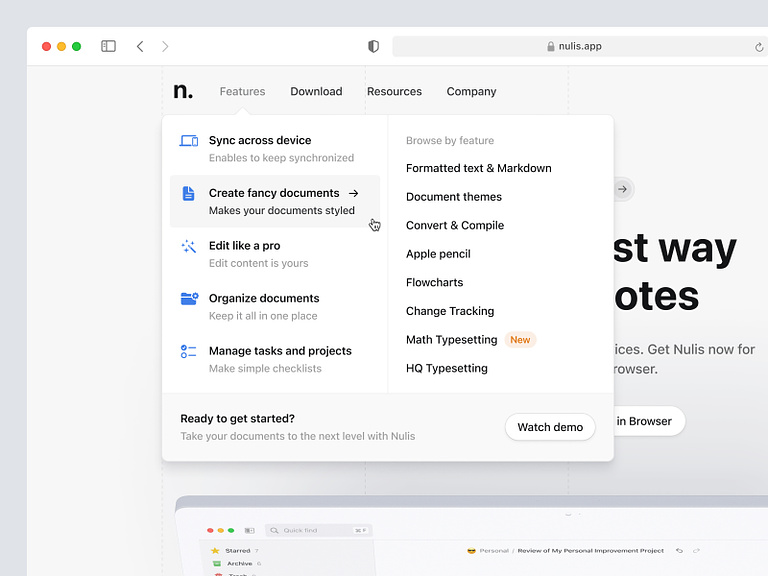 Nulis’s navigation system is fully responsive and optimized for mobile devices, ensuring a consistent user experience across all screen sizes. Whether users are accessing the website from a desktop, tablet, or smartphone, they can navigate with ease and efficiency, thanks to the intuitive flyout menu/header.