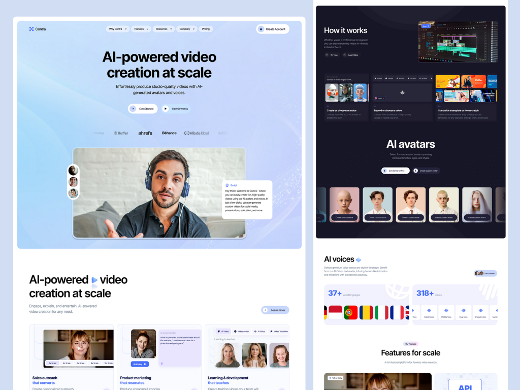 The homepage begins with a AI-Powered Video Creation section that highlights the platformβs ability to automatically generate high-quality videos from text, images, and other media. This feature leverages AI to streamline the video production process, saving users time and effort.