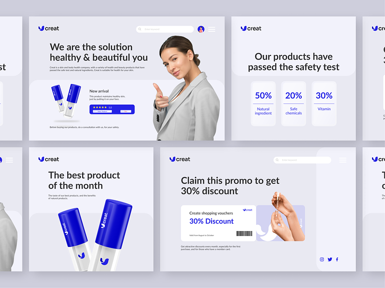 Leaf accents gracefully intertwine with the typography, emphasizing Creat’s commitment to natural ingredients. Each leaf represents the botanical richness infused into the skincare products. It serves as a visual cue for consumers seeking skincare solutions rooted in the goodness of nature.