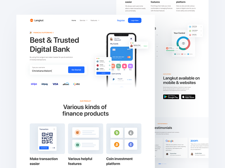 The landing page boasts a modern and inviting design that captures your attention from the moment you arrive. Navigating through the interface is a breeze, with a clean layout that prioritizes user-friendliness. Wealth™ welcomes you to a digital space where financial control is at your fingertips.