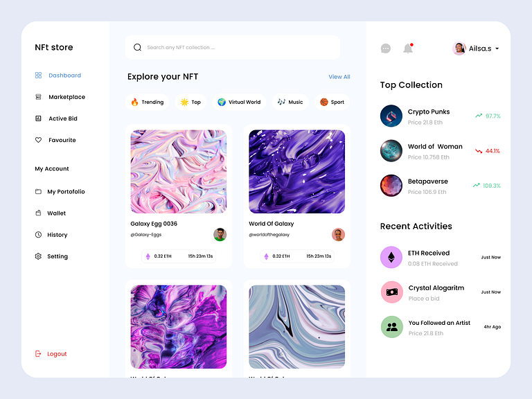 Dive into the dynamic world of non-fungible tokens (NFTs) with the NFT Store Dashboard. Our dashboard is meticulously designed to provide a seamless and visually engaging experience for artists, collectors, and enthusiasts alike. Let’s navigate through the vibrant features and styles that make NFT Store a hub of creativity and innovation.