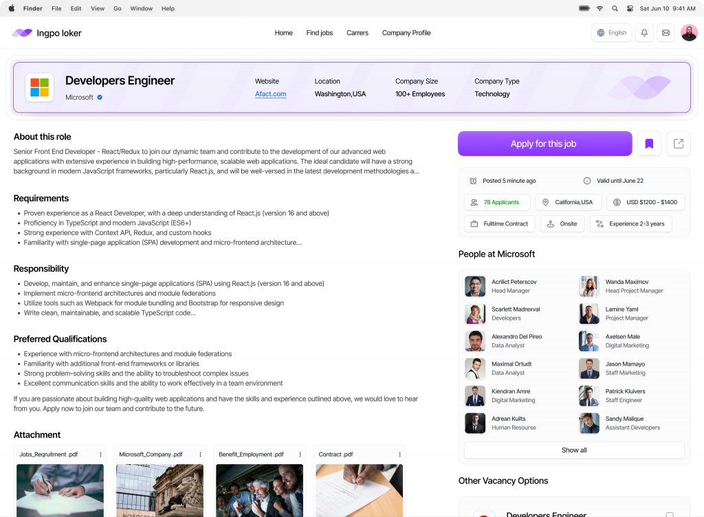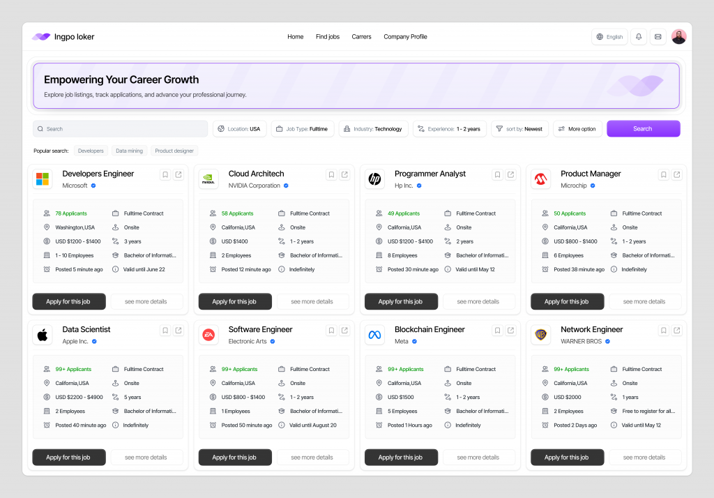 The Company Profile Dashboard in Ingpo Loker offers a detailed view of potential employers, equipping job seekers with the information they need to make thoughtful career decisions. From company culture to growth opportunities, this dashboard provides a complete picture of what itโs like to work at the company.