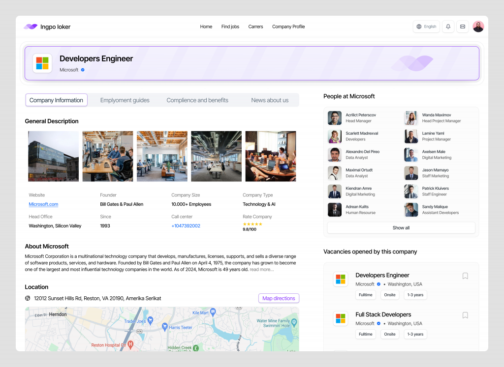 The Company Profile Dashboard in Ingpo Loker is designed to give job seekers an in-depth understanding of potential employers, helping them make informed decisions about where they want to work.