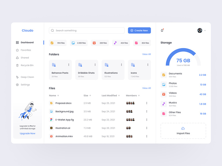 Revolutionize the way you manage and interact with your digital universe with Cloudo, where the clouds meet cutting-edge convenience. Say goodbye to the chaos of scattered files and embrace a sleek, intuitive Cloud Storage Dashboard designed to elevate your storage experience to new heights.