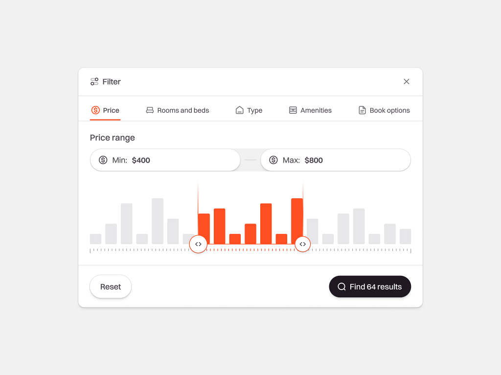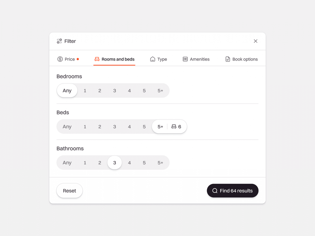 Search for properties with the desired number of bathrooms. Whether you prefer properties with multiple full bathrooms, half-baths, or en-suite options, the Filter Rooms feature has you covered.